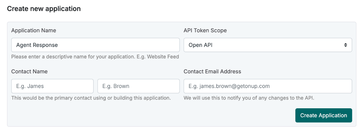 Log in to your Agent Response account and go to the ‘Create Integration’ page (https://agentresponse.app/settings/team-integrations).