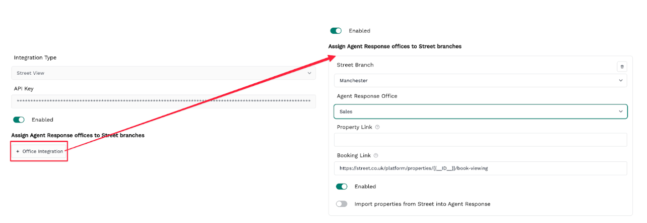 After connecting your Street.co.uk account in Agent Response, click the ‘+ Office Integration’ button to set up your first office integration.